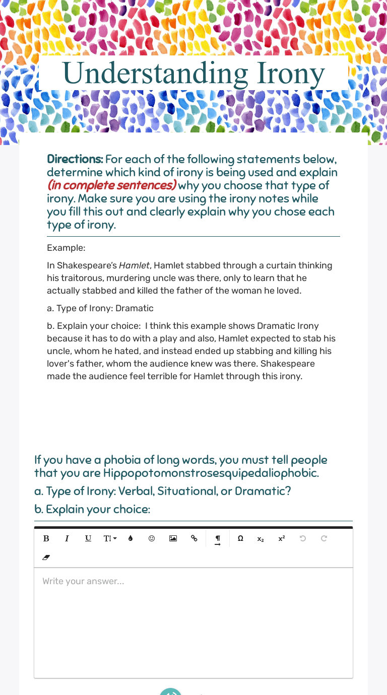 0 Comments for "Irony Worksheet 8Th Grade - Verbal Irony Facts Worksheets Examples Definition For Kids :"